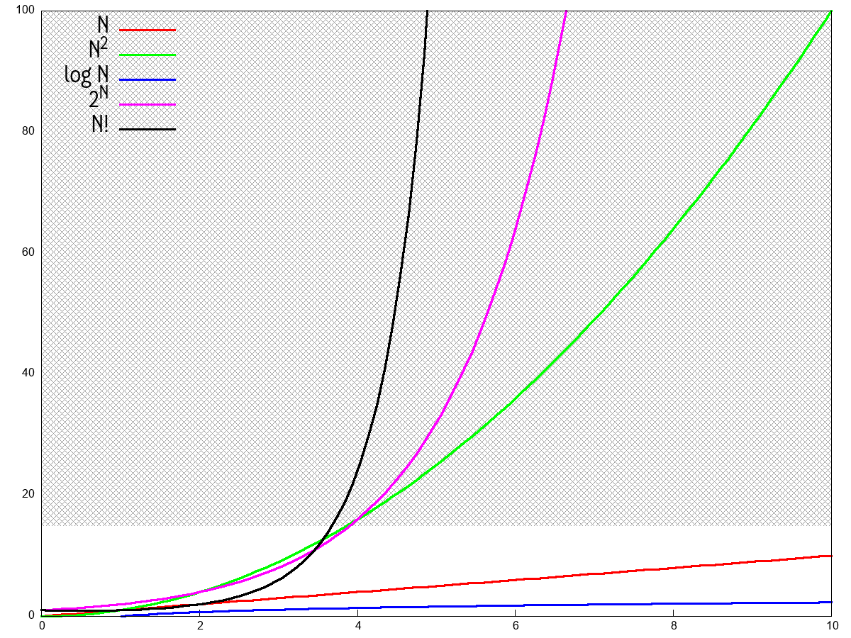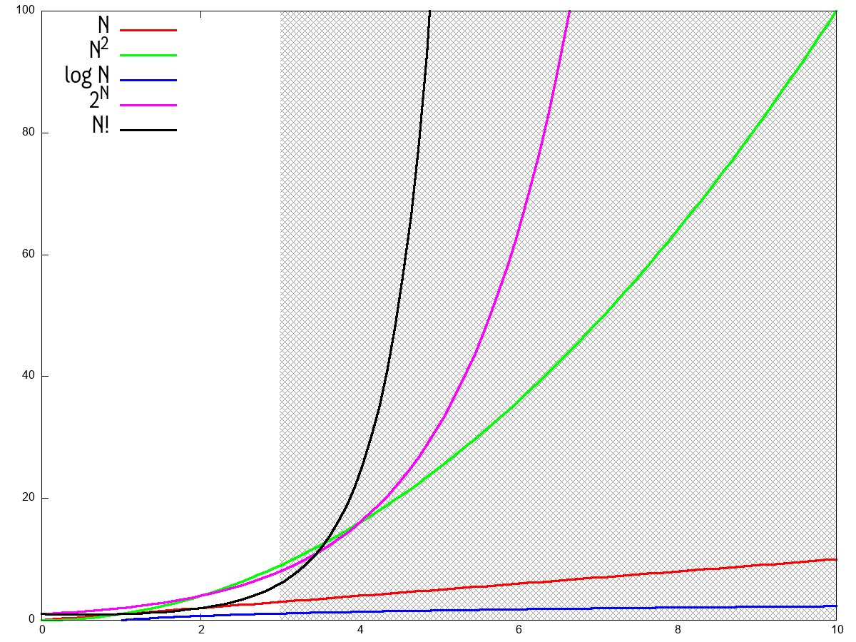 | O(N!) | 1 | 3.628.800 | 9,3×10157 | 🤯 |